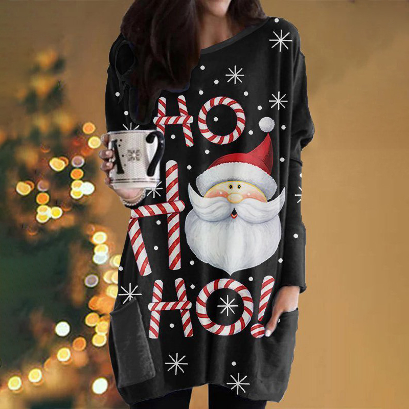 Christmas Print Crew Neck Long Sleeve Casual Tunic