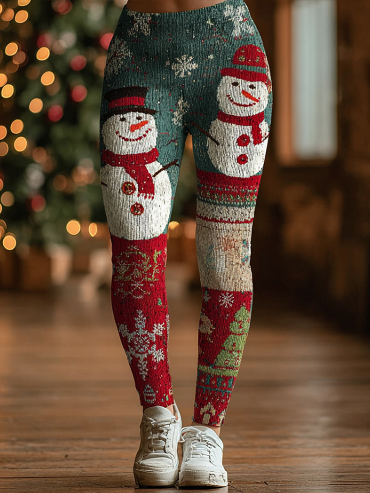 Christmas Snowman Lady Knitted Tight-fitting Leggings