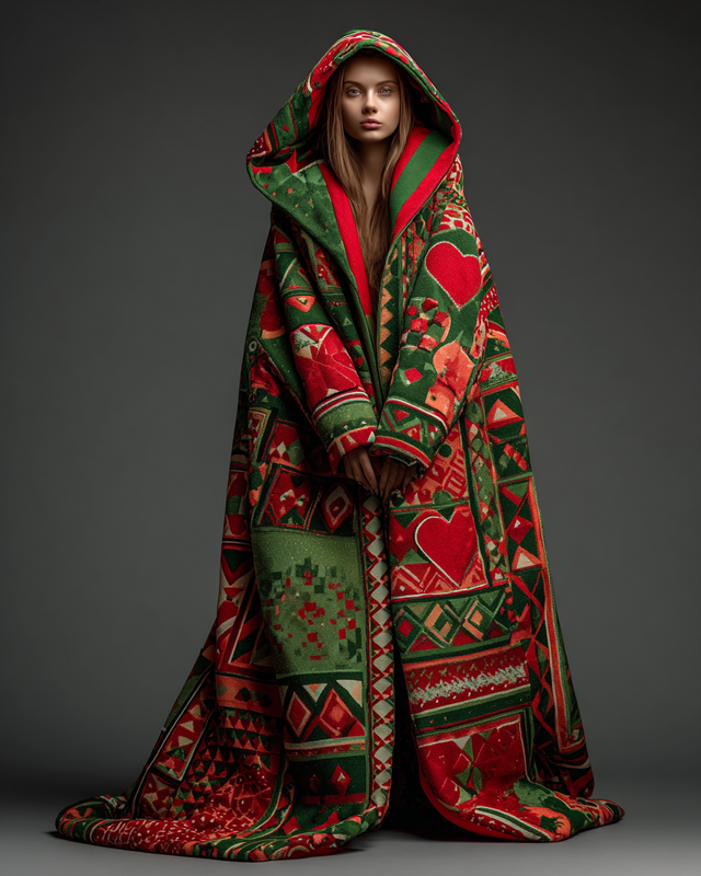 Christmas themed elegant contrasting color hooded cape coat 3947