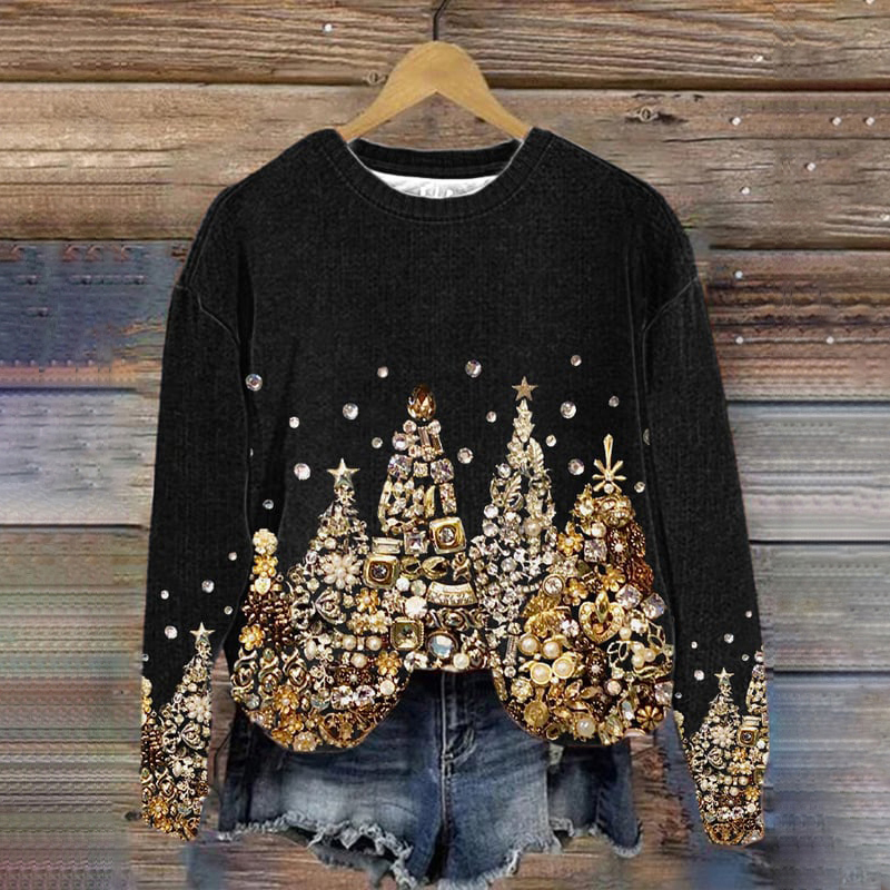 Christmas Tree Jewel Art Crew Neck Sweatshirt