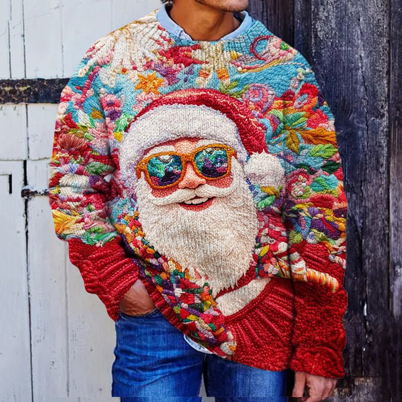Colorful Christmas Santa Claus Cozy Knit Pullover Sweater