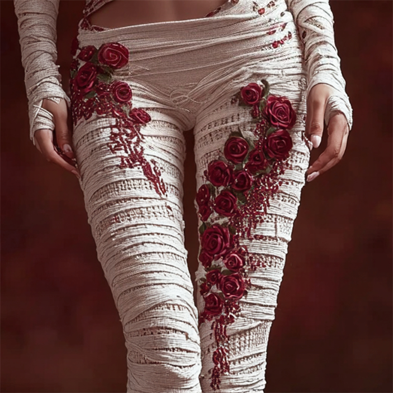 Halloween Bloody Roses Tangled Bandages Cozy Knit Leggings