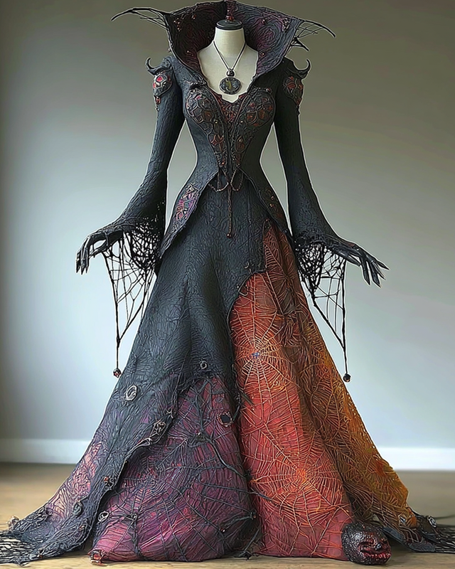 Halloween themed spiderweb embroidered contrasting color witch cosplay costume 0693