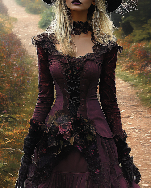 Halloween themed rose embroidered witch cosplay costume 27ce