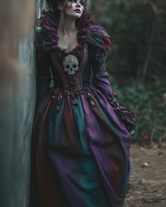 Halloween themed skull embroidered contrasting color witch cosplay costume bf96