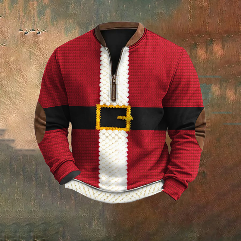 Men's Christmas Color Block Zipper Casual Sweatshirt