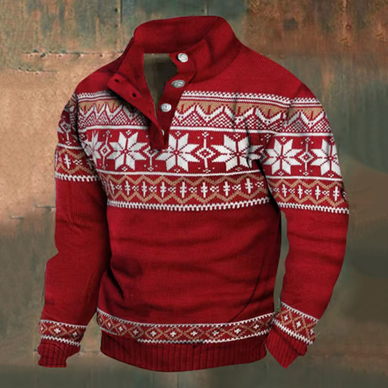 Men's Christmas Snowflake Pattern Stand Collar Button Sweatshirt