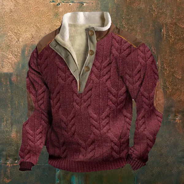Men's Retro Knitted Patchwork Jacquard Stand Collar Button Christmas Sweatshirt