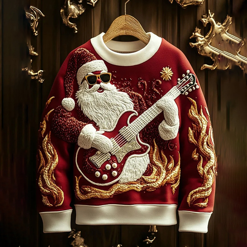 Men's Santa Claus Playing Guitar And Singing Christmas Songs Flame Embroidery Print Casual Sweatshirt