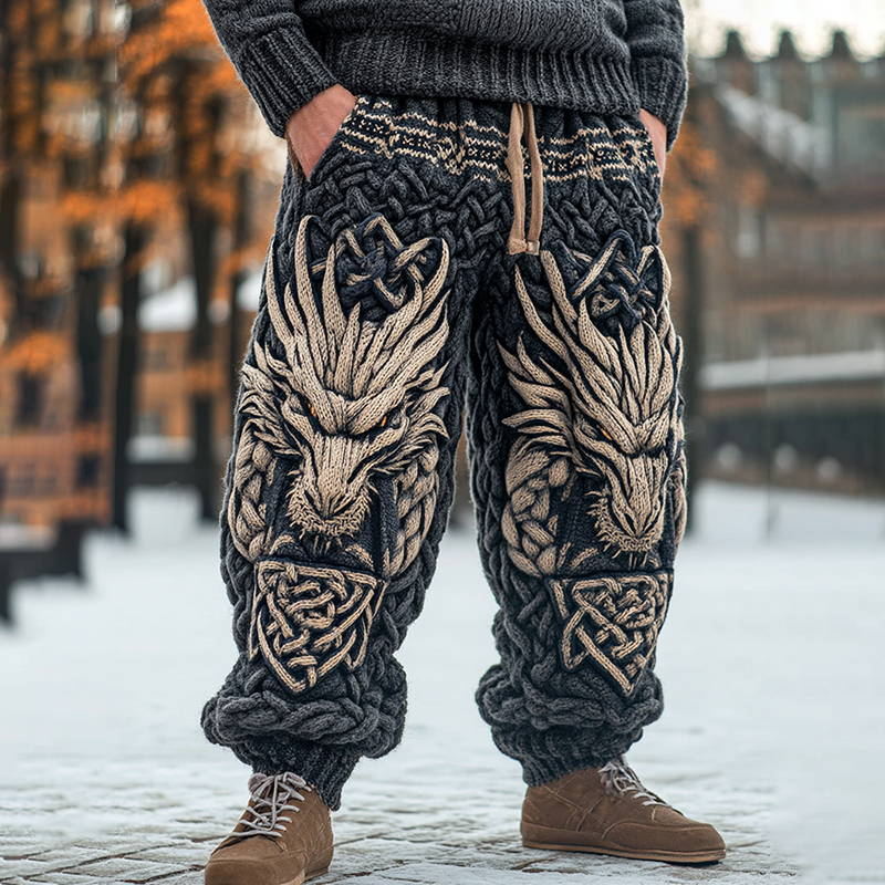 Men's Viking Dragon Celtic Knot Art Wide Leg Warm Knit Pants