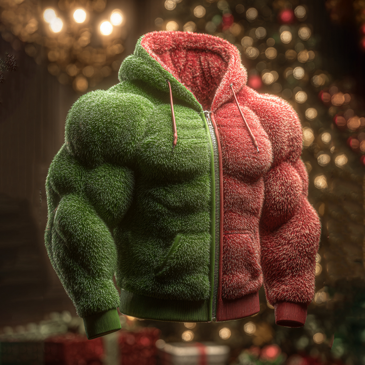 Men's Vintage Muscle Line In Christmas Art Warm Cozy Zipped Up Hooded Sweatshirt