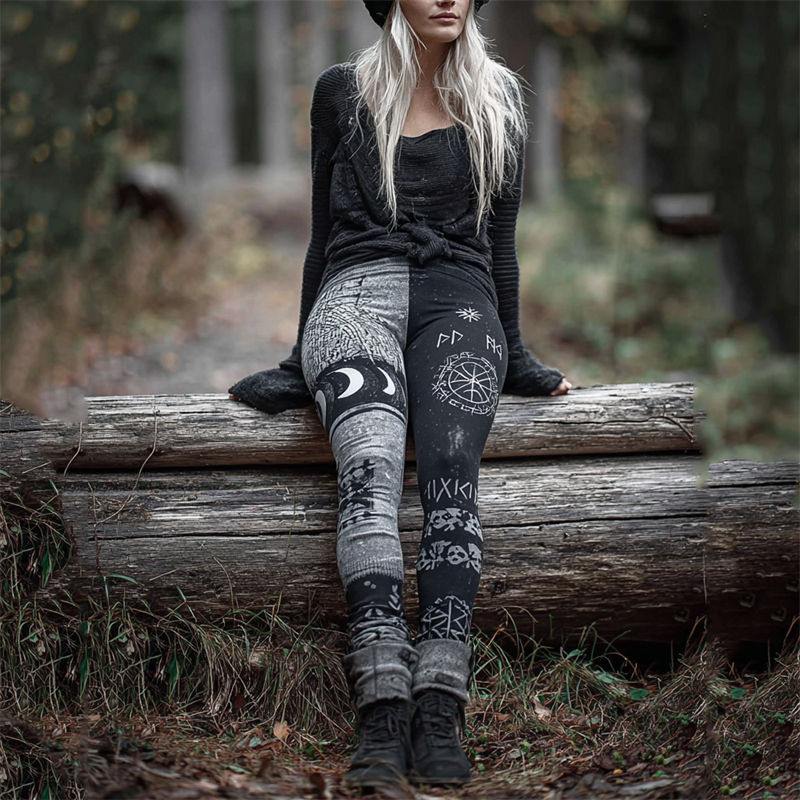 Mystical Moon Phase Viking Runes Contrast Cozy Leggings