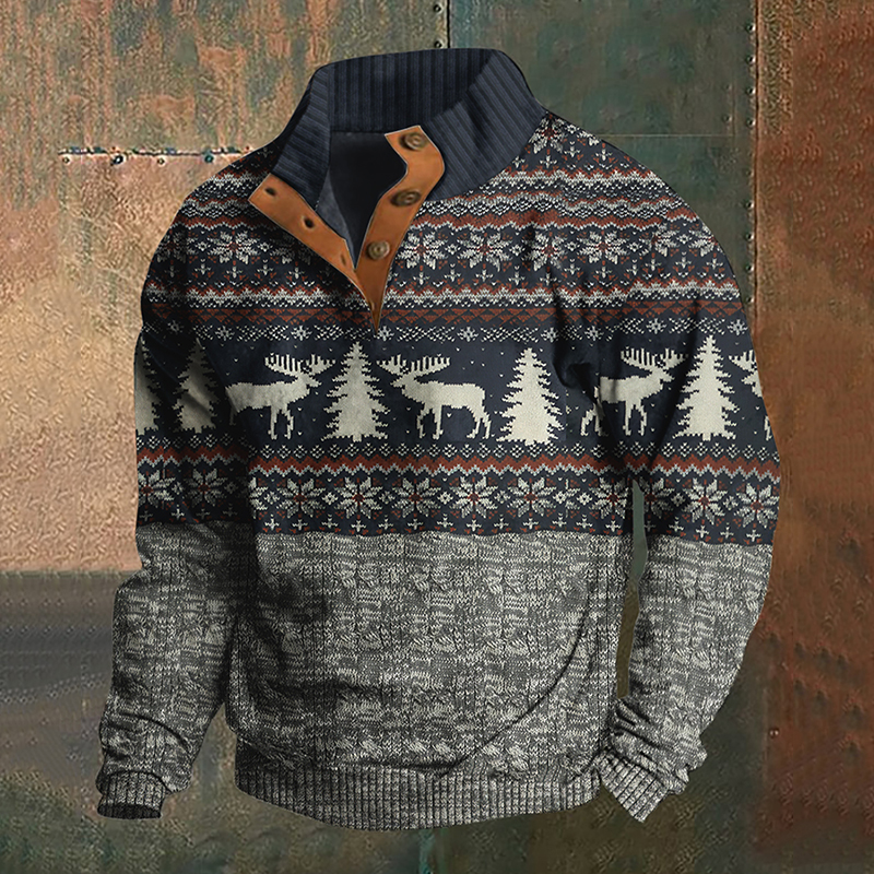 Retro Men's Knitted Vintage Merry Christmas Deer Graphic Print Casual Sweater