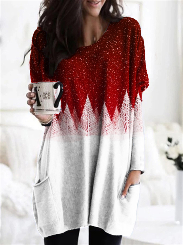 Snow Christmas Tree Contrast Long Sleeve Tunic