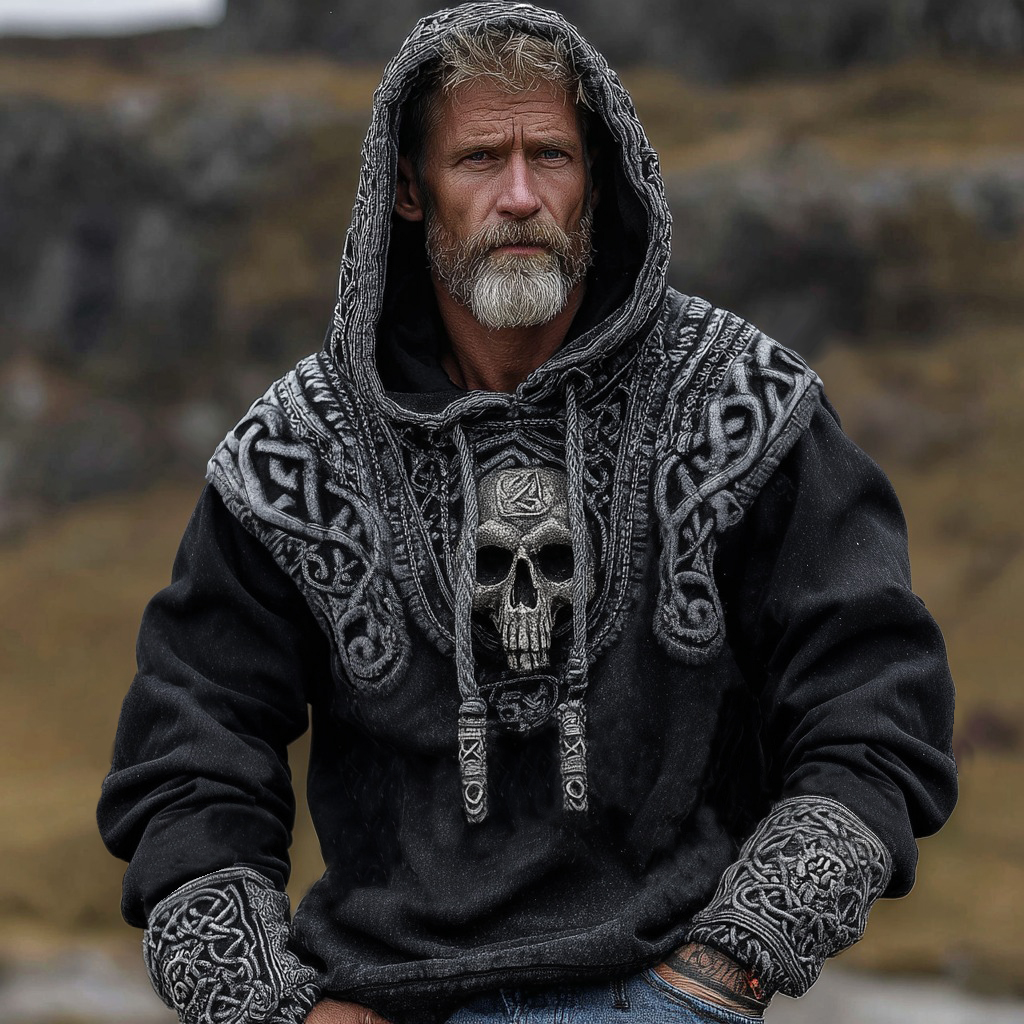 Viking Skull Celtic Knot Inspired Tribal Distressed Washed Hoodie