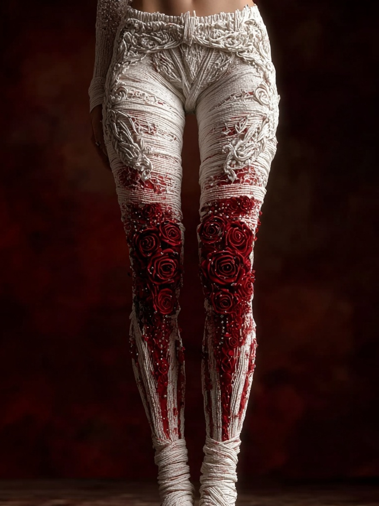 Vintage Halloween Bloody Roses Bandages Cozy Knit Leggings