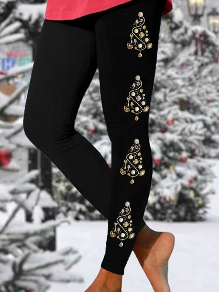 Vintage Jewelry Art Christmas Trees Casual Leggings