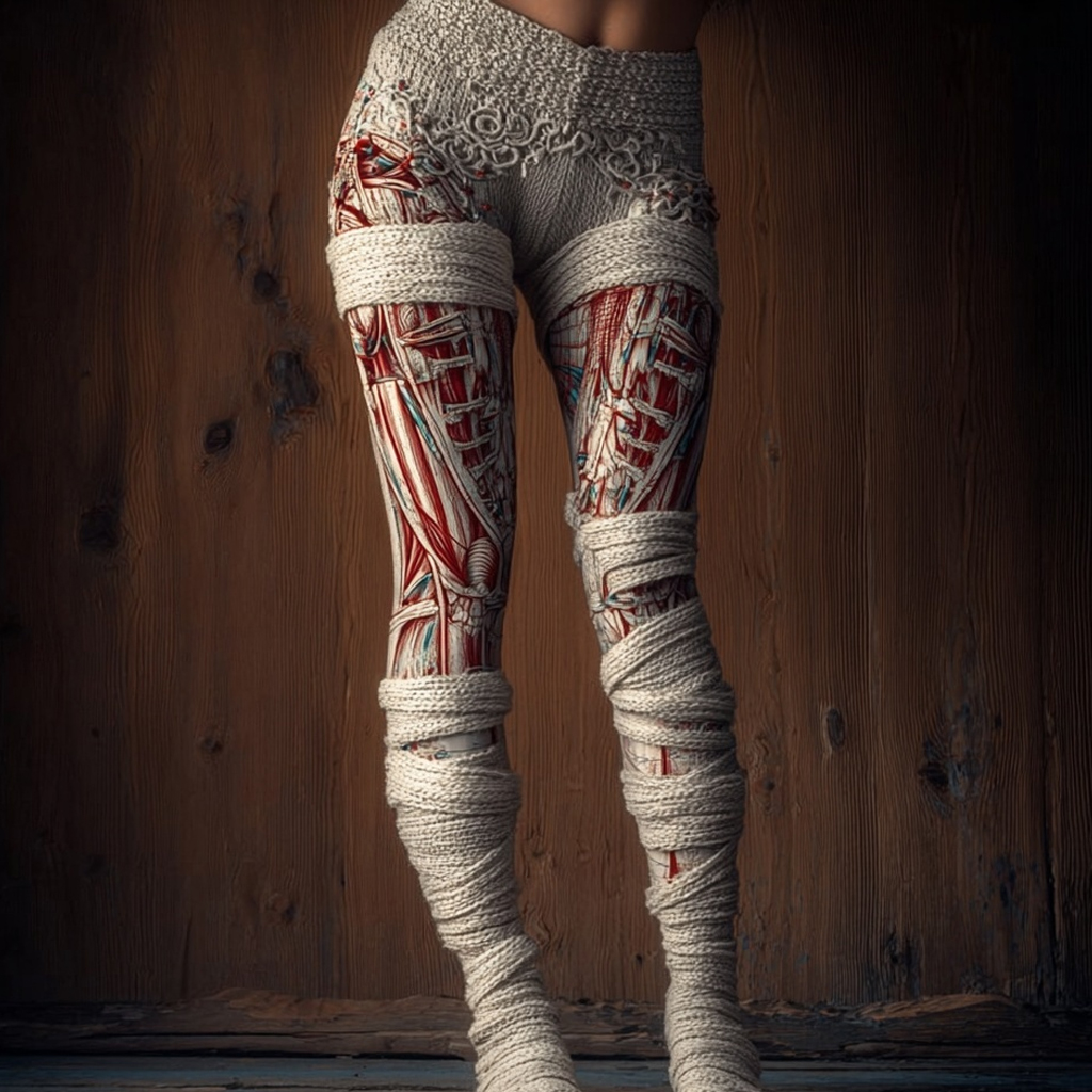 Vintage Muscle Anatomy Bandage Art Cozy Knit Leggings