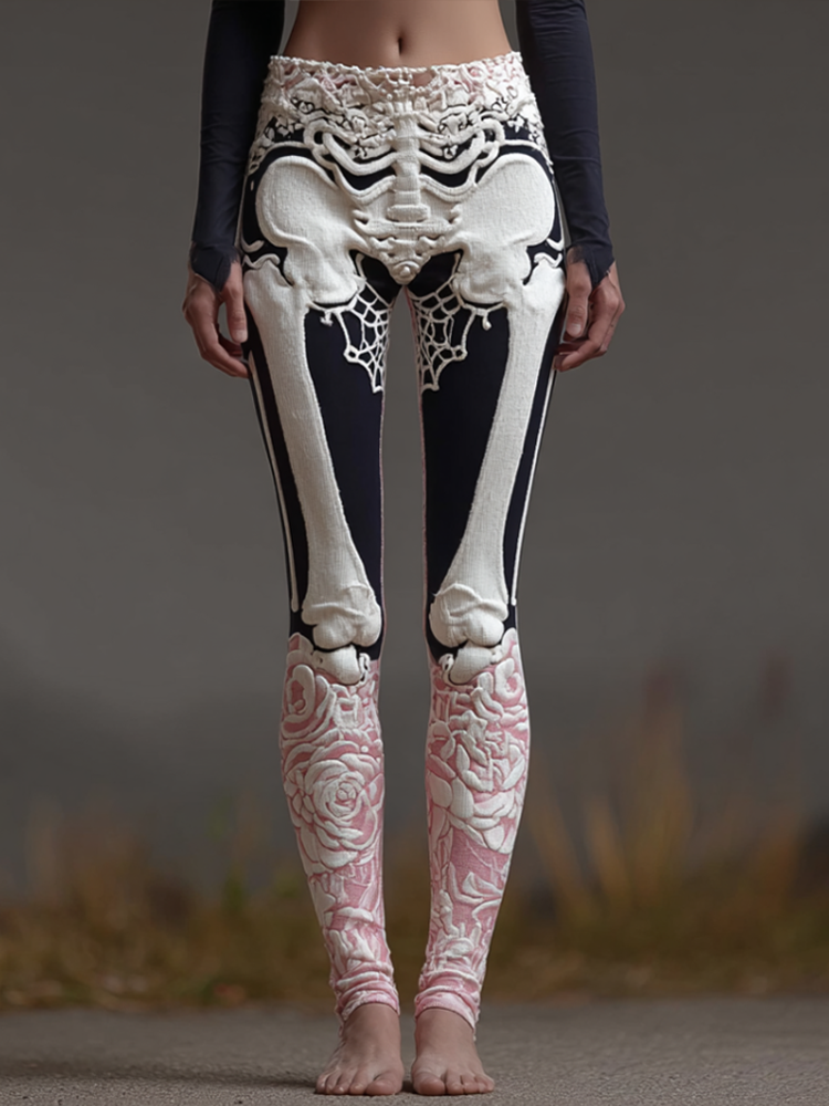 Women's Anatomical Style Dark Halloween-themed Knitted Tight-fitting Leggings