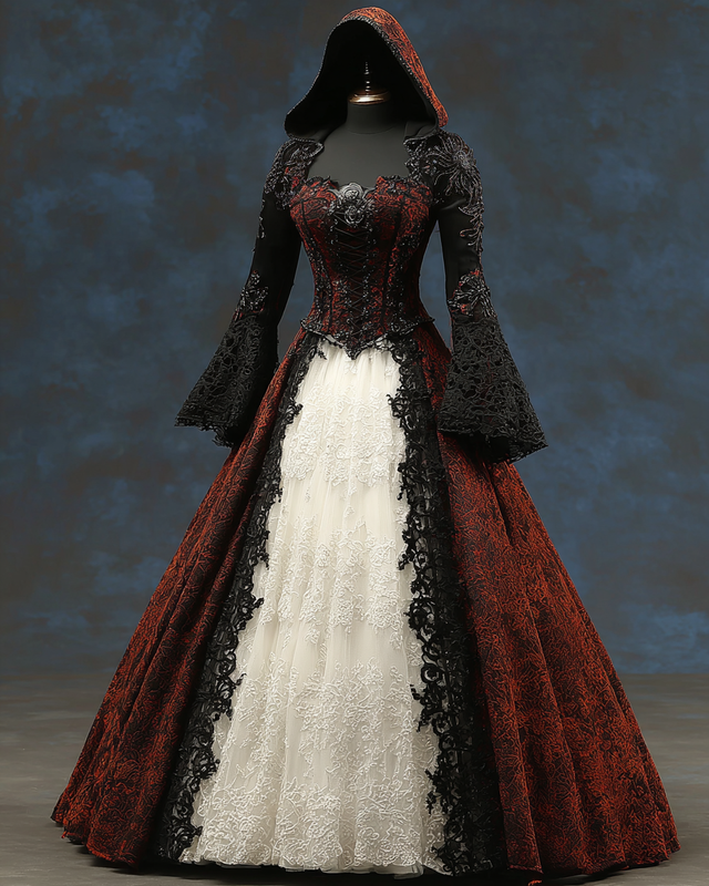 WOMEN'S AUTUMN AND WINTER ELEGANT CONTRAST COLOR CAPE DRESS 1414