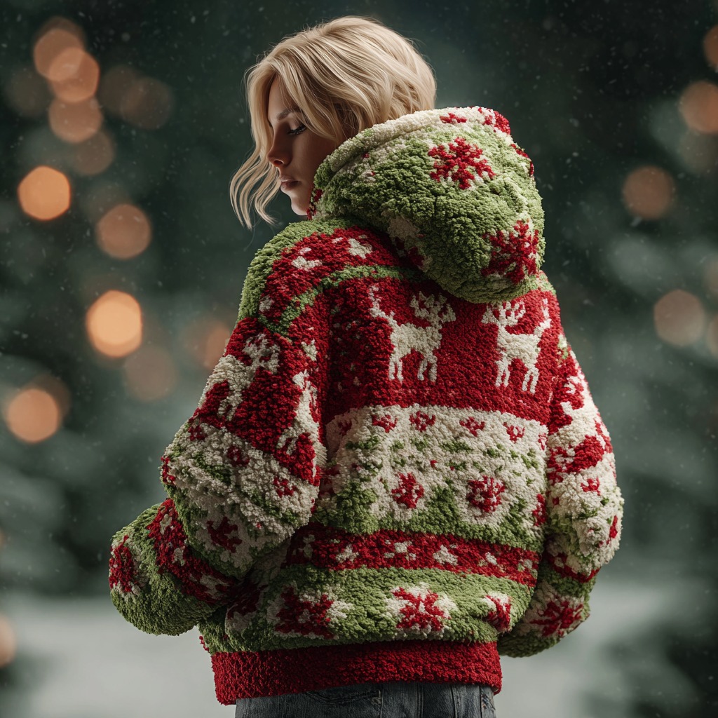 Women's Christmas Reindeer Art Thickened Warm Iceland Hoodie