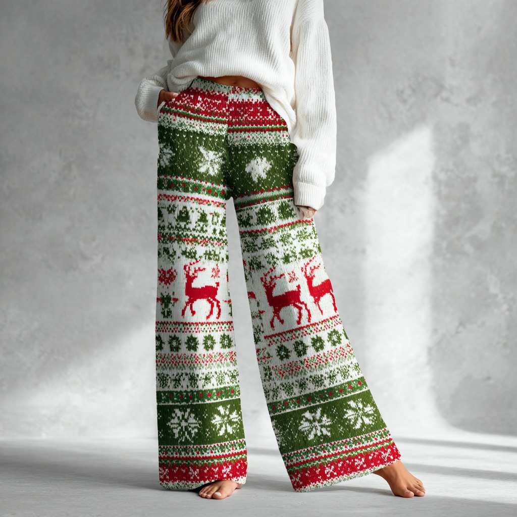 Women's Christmas Reindeer Art Thickened Warm Knitted Pants