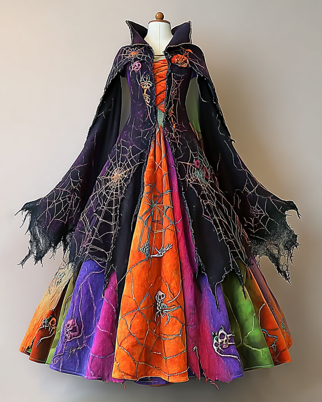 Women's Halloween Elegant Contrast Color Slim Fit Cape Dress 3573