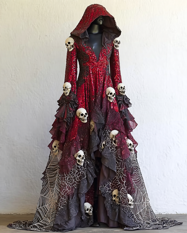 Women's Elegant Halloween Contrast Color Slim Fit Dress 3179