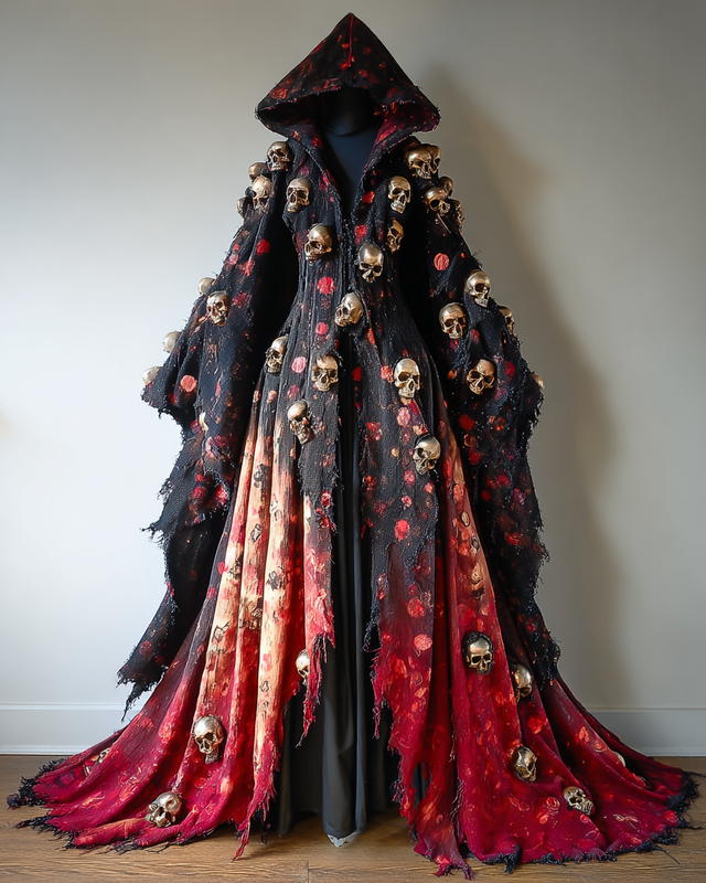 Women's Elegant Halloween Skull Contrast Cape Dress 2a15