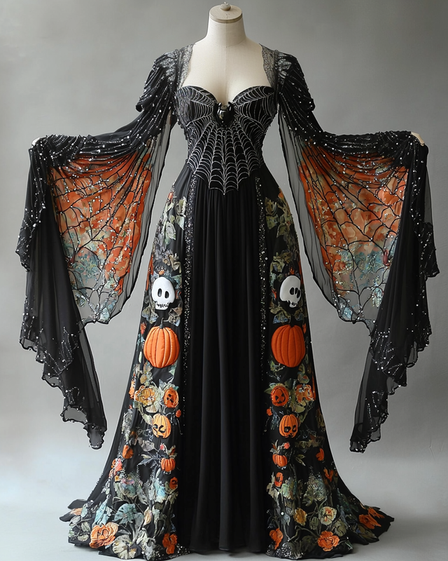 Women's Halloween Bat Wing Sleeve Contrast Cape Dress fefc