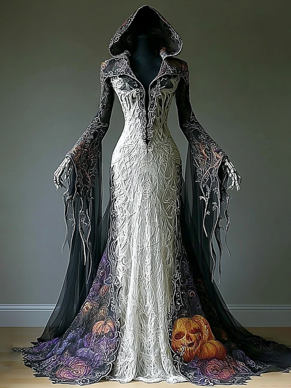 WOMEN'S HALLOWEEN PARTY CONTRAST COLOR LOOSE WIDE SLEEVE CAPE DRESS ed2f