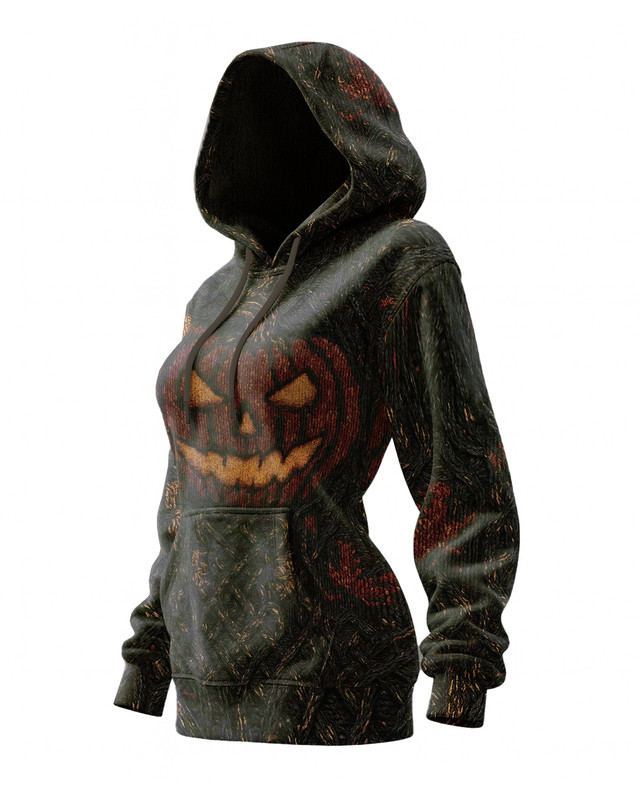 Women's Halloween themed embroidered contrasting color long hooded sweatshirt dress 0408
