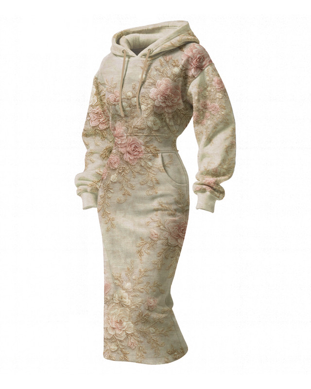 Women's Halloween themed embroidered contrasting color long hooded sweatshirt dress 974a