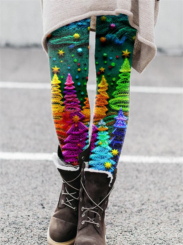 Women's Merry Christmas Colorful Christmas Tree Printed Leggings